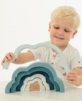 Púsluspilið frá Label Label er úr hágæða FSC vottuðum við og hver skýbogi er skreyttur með mjúkum litatónum með barnvænni vatnsbundinni málningu.